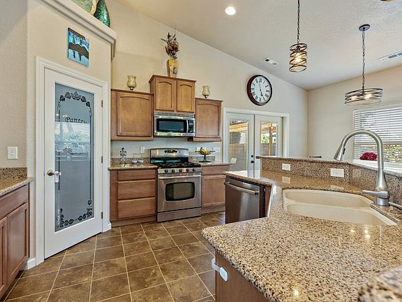 This beautiful well cared for home has a spacious floor plan and a multitude of builder upgrades including, vaulted ceilings in the main living areas, and 9 ft ceilings throughout, central vac, granite countertops, walk-in pantry, french doors to the backyard, insulated walls for reducing the interior sound level and many windows providing sunlight throughout the home. The kitchen has an island with barstool seating, a walk-in pantry with decorative frosted glass, wood cabinets, and quick access to the backyard patio for easy entertaining. The oversized master bedroom with master bathroom has granite counters, soaking tub, wood cabinets, and a large walk-in closet. A covered front porch for those nights you want to sit and enjoy the quiet cul-de-sac. This house is ready to be called home!