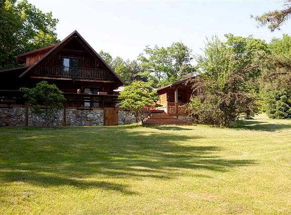 A piece of Heaven is how to describe this unique property. Beautiful custom built Log house with lots of extras. Home has 3 bedrms, Loft bedroom has its on balcony. Cathedral ceiling with large windows to let in the light. Grand Rec room for entertaining. 2 fireplaces 1-gas, 1-woodburning and ceramic tiles & Wood floors through out. Enjoy the wrap around deck and relax in the jacuzzi. Property also has a 1 bedroom Questhouse with Livingroom, dining and kitchen combo. Take in the scenery of the manicured grounds. Outside stone grill, Gazebo, Large 2 car garage with lots of storage. 3 section barn with horse stall and loft storage. Home & garage has underground French drains. All this plus 49.5 acres to explore and hunt. Your own private retreat. Make a date to come see this gorgeous estate
