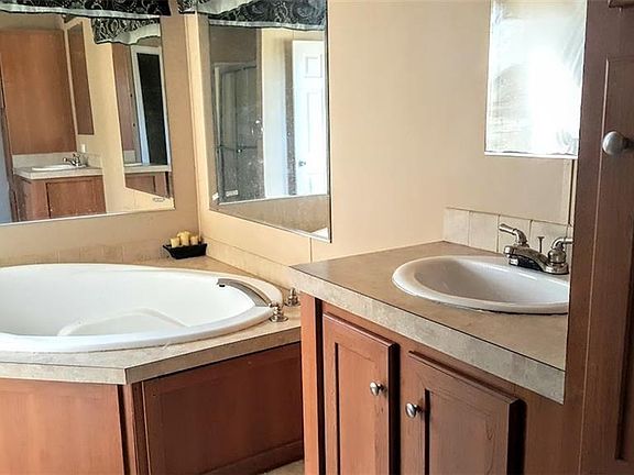 2013 Mobile home w/detached 2 car garage. Absolutely move in ready but in need of some carpet replacement. Spacious family room open to a beautiful kitchen w/island & large pantry. Master suite with walk in closet, garden tub and separate stand up shower. Huge fenced in backyard. Peaceful wooded view from front and back yards.