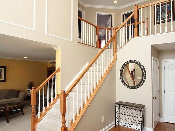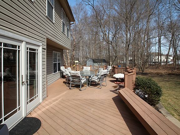 Gorgeous stone front colonial backing up to woods! Cul-de-sac location situated on a larger lot. Completely and totally rehabbed and updated in 2008. Stunning gourmet kitchen with breakfast room, new granite counter tops, center island, oversized cherry cabinetry, all new stainless steel appliances. Kitchen opens to a vaulted sunlit family room with bay window and soaring stone fireplace. Formal living room and dining room with hardwood floors. First floor office/study. New oak flooring throughout entire first floor. Second floor master suite with large master bath, dressing room, and walk-in closets. 3 additional bedrooms with spacious hall bath. Completely finished lower level, bar, game room with exposed stone walls, exercise room and half bath. New high Efficiency Carrier HVAC system recently installed with added insulation. New Laundry Room upper and lower cabinetry added for convenient folding and storage. Outside: expansive deck of the breakfast room/kitchen area, entertainment patios, perennial gardens and mature specimen landscaping. 2-car oversized garage. Storage shed. Freshly painted. Move in condition. Great location! Zillow estimate does not reflect the many upgrades: finished basement, larger lot, cul-de-sac lot, high end kitchen, new HVAC, & new hardwood flooring on main floor.