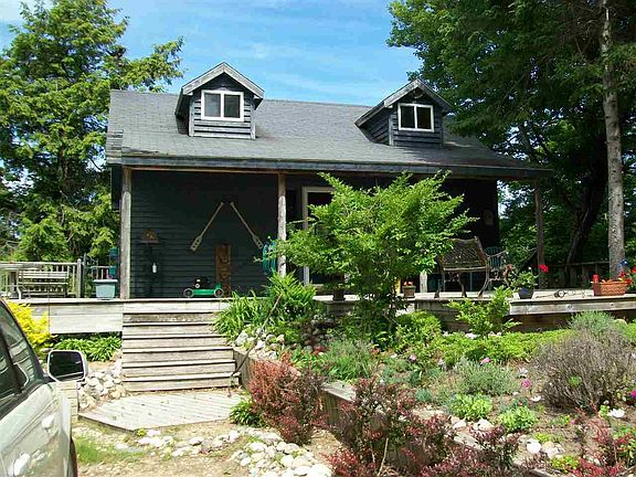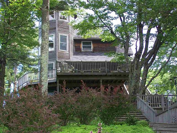 Approx. 3000 sq ft home (3 levels) on the east side of Blue Spruce Rd. The 2nd level is the main part of the house, has the kitchen, dining & living room with views of High & Trout Island's to the west with a partial water view. The 3rd level has a large bdrm and bath with tremendous partial views of Donegal Bay and all the waters from the SW of High Island to Whiskey Island. The small tower above the 3rd floor has an absolutely stunning view of all of Donegal Bay. This house has a tremendous amount of decks on all sides, on every level.