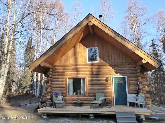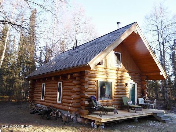 Adorable log home on over 2 acres near the Talkeetna ''Y'', nice kitchen with Viking gas range,stainless steel fridge, quartz counter tops in kitchen and bath, maple hard wood flooring on main floor, 2 bedrooms,full bathroom and half bathroom,guest cabin is 12' by 12',
