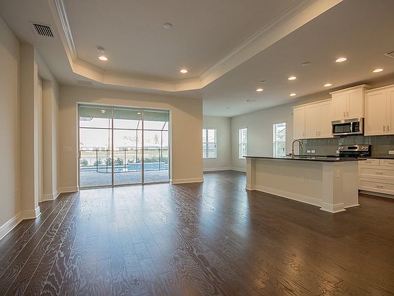 3 bedrooms, den, 2.5 bathrooms, great room, 2-car garage and screen-enclosed pool with a lake view.. Other features include stainless steel appliances, wood floors in the living areas and coffer ceilings in the living room and master bedroom.