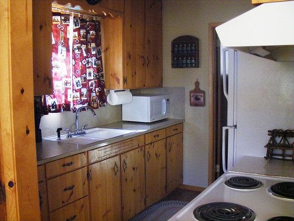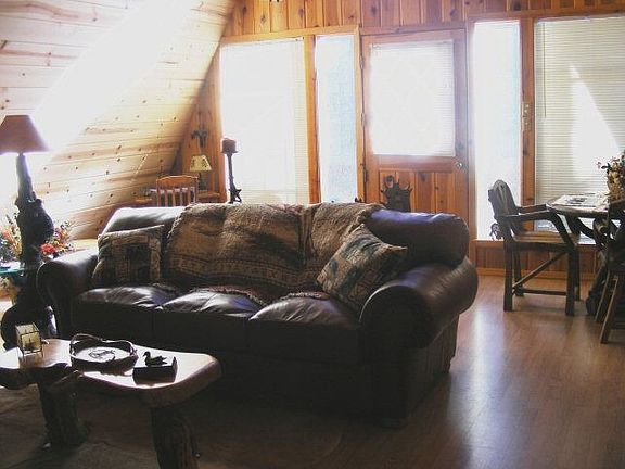 This is a great cozy get away cabin in the pines. The National forest is adjacent to the back of the property which gives it a sense of privacy. There are decks on the front and back of the home; the back deck is off the loft on the second level. The loft is currently being used for additional sleeping accommodations. The home has two storage sheds. There is also a workshop in the partially finished basement, there is a washer and dryer hook up and the 1/2 bath in the basement, as well. The home is in an a-frame structure and it is heated with electric heaters.