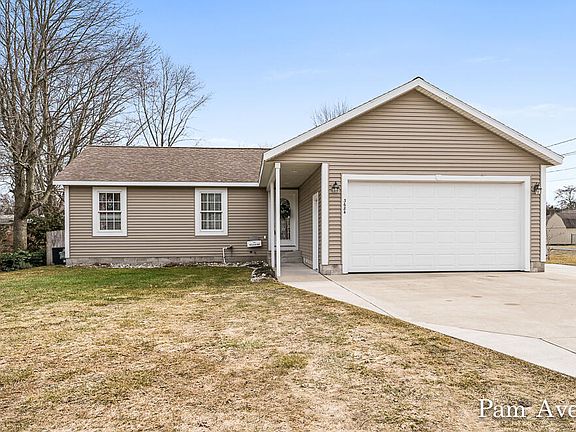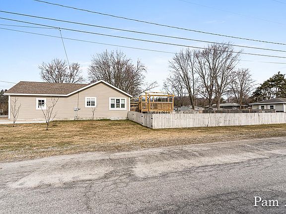 Welcome home! Open Concept, three bedroom Fruitport Rancher with fenced yard! Kitchen offers plenty of counter space, center island, beautiful cabinets & newer appliances. Dining area has built in benches with storage. Living room has a nice corner fireplace and a slider that provides easy access to the two tiered deck & above ground pool. The partially finished basement has an egress window & is ready & waiting for you to do whatever you like as well as offering plenty of storage space! Circle drive and additional parking pad provides flexibility for ingress / egress. Bedroom two has built in Queen size bunk beds (seller will remove if necessary, mattresses do not stay). Above Ground Pool is taken down for the winter months, the deck also has removable vinyl coverings for shade.