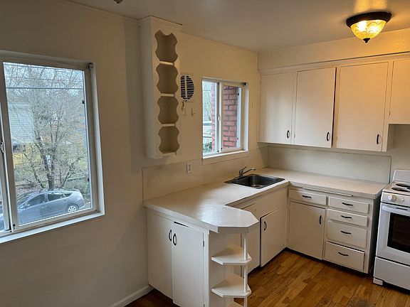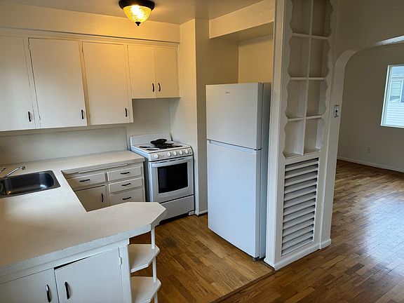 RARE vacancy in a freshly painted two-bedroom unit in a charming four-plex in very desirable and close-in SE Portland. Although it is in a quiet neighborhood, it is near all the trendy action in the interesting and eclectic Richmond-Clinton-Reed-Woodstock-Brooklyn districts. A large grassy front yard and porch welcome you to this upstairs unit. Wide picture windows, nice fixtures, and original satin oak hardwood floors retain the charm and character of the period. The kitchen has a dining nook, built-ins, a range, a refrigerator, ample counter space with preserved period tiles, white cabinets, and large windows. The plex has nice additional features like Laundry-Room and parking. Walk or bike or bus to Trader Joe's, Safeway, Starbucks, Fred Meyer, Stumptown Coffee, Gladstone Street Pub, the C, Walgreens, and New Seasons. Cat okay