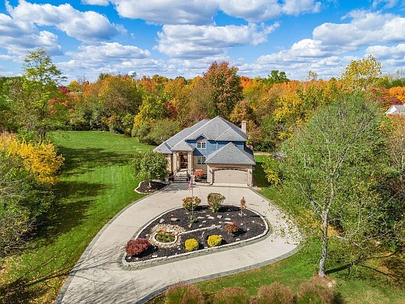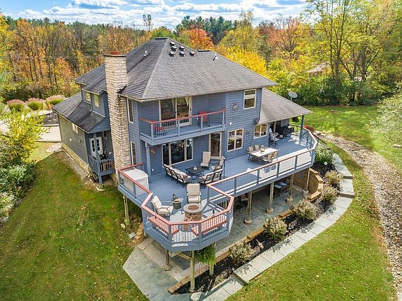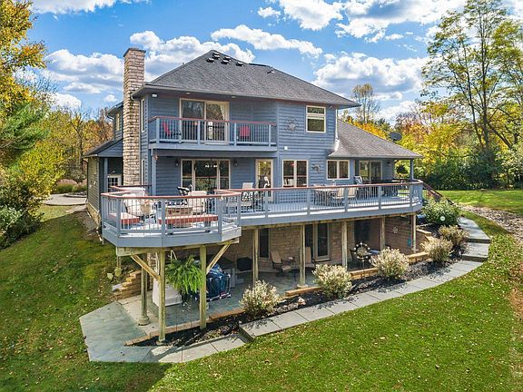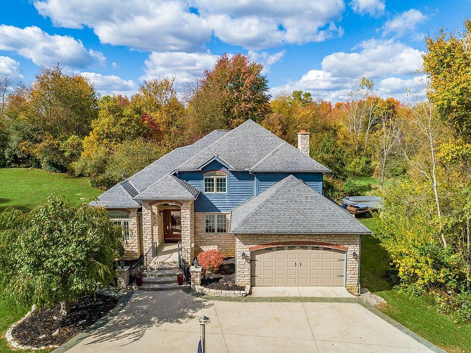 Contemporary design with spectacular views and a harvest of features.....This distinguished residence offers 4 BR's/3.5 BA's on three finished levels w/nearly 4000 sq. ft. situated on 2+ acres w/gorgeous views from every window! Featuring a 1st flr den, vaulted living/dining rms, 1st flr laundry, sunken family rm w/FP and wet bar, and a fully equipped gourmet kitchen w/SS appliances, granite counters, maple cabinets and a center island/serving bar! Deluxe owners suite complete w/jetted tub, dbl vanity, W/I closet and private balcony! The finished W/O LL includes a media rm, custom bar, and 4th BR/3rd full BA! Also featuring an expansive deck (1000 sq. ft), LL patio w/6 person hot tub, swimming pool, circular driveway, and extensive landscaping! NEW hardwood floors (2021)! SEE WORTHY!