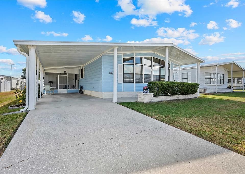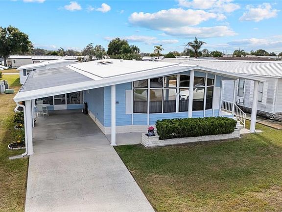 Whether you’re looking to escape the cold and snow for a few months or enjoy year-round retirement in beautiful, sunny Florida, Betmar Acres—an active 55+ GOLF community where you own the land—welcomes you home. This beautifully maintained and fully furnished 2-bedroom, 2-bathroom Palm Harbor home, perfectly situated on a quiet cul-de-sac, is calling your name. Step inside to a spacious open floor plan designed for comfort and effortless entertaining. The chef-friendly kitchen features a center cooking island, newer appliances, wood cabinetry, closet pantry, breakfast area, and even a wet bar—a dream setup for hosting family gatherings or holiday celebrations. The formal dining room, complete with a built-in China cabinet and elegant chandelier, opens seamlessly into the bright and sunny living room, creating an inviting environment filled with natural light. The roomy owner’s retreat includes a ceiling fan, walk-in closet, and a luxurious ensuite bathroom offering a double vanity, step-in shower, and a separate Jacuzzi tub—perfect for unwinding after a fun day on Betmar’s golf course. Bedroom two features a built-in desk and convenient access to a Jack-and-Jill bathroom with a tub/shower combo, shared with the inside laundry area for added functionality. At the front of the carport, you’ll find a relaxing screen room with ceramic tile flooring and a ceiling fan—an ideal spot to enjoy warm afternoon breezes. Just beyond the screen room is a well-equipped workshop featuring ample shelving, an extra refrigerator, and an automatic roll-up door, allowing easy access for your golf cart. Betmar Acres offers unbeatable convenience—close to shopping, dining, and premier medical facilities, and only a short drive to some of the Gulf Coast’s most beautiful beaches. Why live anywhere else? Schedule your private tour today and discover all the wonderful features this amazing home and community have to provide.