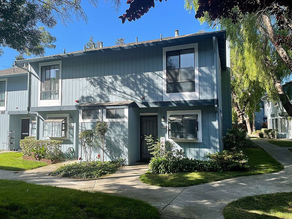 Rarely available end unit in the highly desirable Foxwood Community! 2bed 2.5 bath with 1166 sqft living space. Quiet with lots of trees situated in the best location within the community. Back patio oversees greenbelt with kids playground. Community pool and clubhouse is perfect for entertaining friends and family over the weekends. Kitchen with newer stainless steel appliances, greenhouse window and tile floor. Large living room with wood burning fireplace. Private patio with storage. In unit laundry. Walk-in closet in master bedroom. Two parking spaces. No rental restrictions! HOA includes trash removal, water and access to the pool, spa, clubhouse and gym. Easy access to 880/84 and major Silicon Valley tech companies. Excellent commuter location!