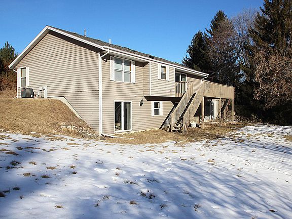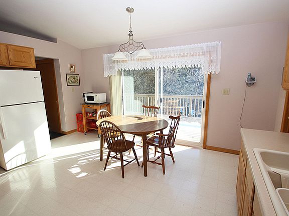 Built in 1997, this ranch with full lower level walk-out is situated on a spectacular wooded 2 acre lot in a great location. Incredible views and nature abounds. Huge 27x10 foot raised deck for spectacular vistas. Huge kitchen with so much room for family meals with patio door to deck and great views. Combination living/dining room sun filled with vaulted ceiling. Main level laundry room. 2 full baths. Entire lower level waits for you to finish because you'll have 2 large patio door walk out to back yard and woods. 3 good sized bedrooms. Updated mechanicals and roof. One of a kind location. Don't wait at this great price and low taxes!!