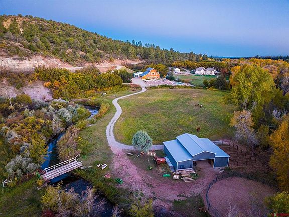 Welcome to 3685 CR 225- a classic Colorado equestrian and fishing retreat on the Florida River. Located in the lush Florida River Valley, this 4.57 acre sanctuary enjoys over 800’ of Florida river frontage with custom home, ample water rights, multiple outbuildings, wildlife, artisan well, views, lush pastures and mature trees. Enjoy horseback riding, biking, hunting and hiking a ¼ mile from your home on over 550 acres of BLM trails or trout fishing on your private stretch of river. THE HOUSE. The timber-framed home features pine wood that combines a modern design with contemporary-minimalist finishes throughout. With 3168 SF, this 3 BD/2 BA home was custom-built by master craftsmen and local artisans. The home has incredible charm and custom features throughout including built ins; tongue and groove/shiplap ceilings; exposed timber framing; concrete sealed floors; in-floor radiant heat; Scandinavian woodstove; Kolbe metal clad windows and doors; 4 Zone Sonos speakers system inside and out; and vaulted ceilings reaching a peak of 31 feet in the living room. The main level features an open concept with inviting kitchen, dining and living areas. Natural light pours in through the large windows and doors. The chef-caliber kitchen is equipped with Verona gas range; separate Thermador refrigerator and freezer; and a large island where family and friends will naturally gather. The grand 'great room' is perfect for entertaining and grants access to the ample outdoor living space. The two guest rooms, office, full bath, and laundry/pantry combo can be found on the main level. Both bedrooms offer custom built in closet space and the home office is spacious and functional. On the upper floor, behind the gorgeous custom farmhouse doors is where you will find the private, primary suite. This exquisite space offers a stylish open closet area, loads of natural light, and built in nightstands. The master bath has gorgeous tile floors that make this area place of calm and relaxation. Featuring double vanities, a stand alone soaking tub, a large tiled shower with dual heads and a built in bench, this bathroom has it all. A loft area can also be found on this level which can be used for additional living/work spaces, gym or play area. OUTSIDE. Enjoy the great outdoors from over 2000 SF of outdoor living space, the ultimate for entertaining or simply relaxing. The grounds are gorgeous complete with an in-ground heated swimming pool with steel wall & concrete construction to withstand climate; spa; and and multi-level tiered landscaping. Relax on the concrete stamped patios with a propane plumbed fire pit and sweet sounds of water flowing through the irrigation canal to the river. The outdoor living spaces offer breathtaking views of the mountains, the Florida River and the superior sunsets that Southwest Colorado has to offer. OUTBUILDINGS. Three separate structures on the property include a barn, garage and a large workshop. There is capacity to park and store up to five vehicles, machinery and all calibers of outdoor toys and gear. A heated 3-car garage (36x24) plus carport with attractive timber framing, insulation and heat (electric baseboards), concrete floors, plumbed for water, 220V, EV set up, 2 outlets for welding, and one 10’x10’ door and two 8’x8’ doors. The metal workshop (20x42) behind the house can storage 2 vehicles; plumbed for a bunkhouse with bath and kitchen; and has two bays with a 10’x10’ and 8’x8’ doors. The metal horse barn includes 3 stalls; tack area; water and electric; 24’ runs with with metal pipe fencing and waterers. This custom property is a unique find in today’s market. The breath-taking setting is peaceful and serene, only minutes to Durango, Bayfield, the hospital and airport. A quintessential country and equestrian setting for the person looking for privacy within close proximity to all conveniences. A true labor of love and will exceed all of your expectations.