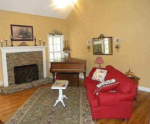 Beautiful 3 acre level, wooded property! 4 Bedroom/3 full bath Ranch on full basement! Upstairs Bonus room or 5th bedroom! Full bsmt w/bedrm, bath, walk-in closet & plenty of room to expand; Vaulted great rm w/Stone fplc; Kitchen features warm Hickory cabinets w/some glass fronts! Screen porch; Vaulted master w/whirlpool bath plus his & hers closets; Hardwood floors; Mud rm/laundry rm; Arches; Heavy crown molding; Charming rocking chair front porch; Wrought-iron gazebo; 2 car garage on main! home is a Donald Gardner House Plan.