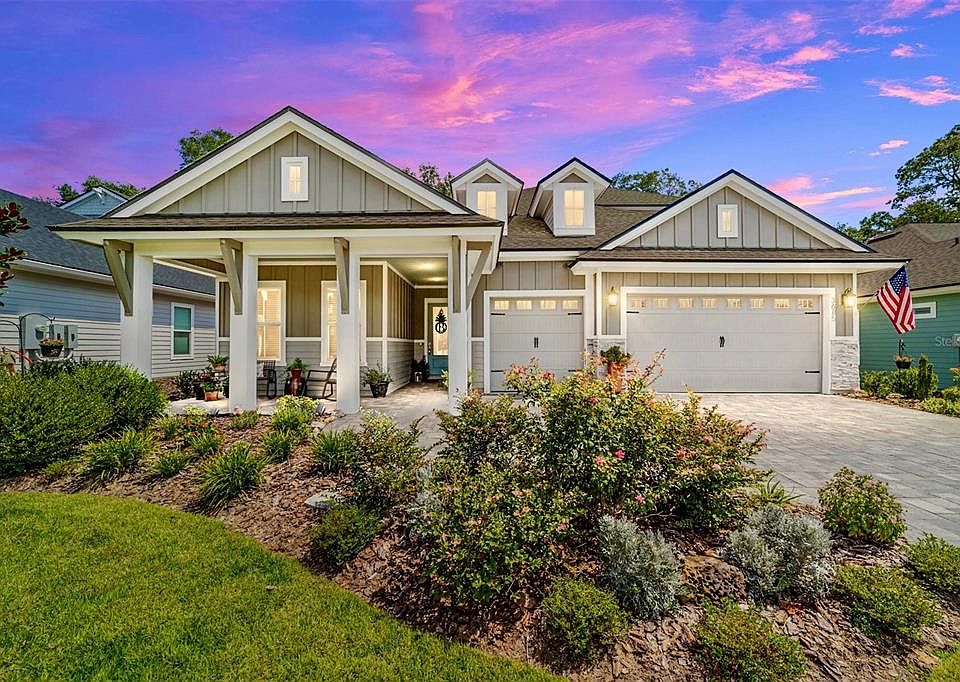 Welcome to this beautifully updated ICI Arden with bonus in Gainesville’s resort style community of Oakmont! If you don’t have time to build, make this one yours! This 5/4 Arden in the "Modern Farmhouse" elevation closed in December 2020. It shows like brand new with all the bells and whistles. Located on a PREMIUM 65ft lot with a very private and fully fenced backyard that backs up to the gorgeous preserve. NO future builds behind this home due to preserve. So much privacy and beautiful views! Upgrades galore throughout this spacious and open concept home. Close to $100,000 worth of interior and exterior upgrades that make this property a showstopper! Luxury vinyl plank in all living areas, stairs and bedrooms, tile in bathrooms, NO CARPET. As you enter the front door your eyes are drawn to the 10ft ceilings and 11ft trays in entryway. Two guest rooms and shared guest bathroom located to left of entryway. Guest bathroom has been beautifully designed with upgraded floor to ceiling tile. 3rd guest bedroom and 3rd bathroom located off garage entry with walk-in shower with floor to ceiling tile and quartz countertops. Spacious laundry room located off garage entrance with upper storage cabinets above W/D and laundry sink. Washer and Dryer stay with the home. Oversized kitchen island with gorgeous granite countertops and stainless steel farm sink. Abundant cabinets and countertop space for storage and entertaining! The kitchen boasts stainless steel appliances, gas range, tile backsplash to ceiling and under-cabinet lighting. Soft close drawers and pull-out drawers in lower cabinets. As you enter the great room you are greeted with sliding glass doors that open from either side and lead onto an extended, covered back patio. Large master bedroom located off kitchen/dining room with beautiful tray ceiling with LED string lights in tray. Large master bathroom with two separate sinks and vanities. Beautiful walk-in master shower with floor to ceiling tile and a linear shower drain. Master bathroom also boats a freestanding soaker tub. Off front door, you will find stairs that will lead to a spacious bonus area that includes an open bonus room and a separate bedroom, as well as a full bathroom with walk-in shower. Pavers in driveway, front and back porches. 500 AMP for future pool/spa. Enjoy the gorgeous views and beautiful Florida weather on your oversized lanai. This home features a 3 car garage, perfect for storing your golf cart, bikes or lawn mower. Full home security system through Habitech. Tankless hot water heater and CLAY Electric! Transferrable 2-10 home buyers warranty. Enjoy all of Oakmont’s amenities: residents club with gym, gathering room, resort style beach entry pool, splash area, basketball, tennis & beach volleyball courts, and playground! Great location and great proximity to Tioga Town Center, Hawkstone Country Club, University of Florida, Santa Fe College, UF Health, HCA Florida North Florida Hospital, Butler Plaza and Celebration Point. This property will NOT last and is a RARE find! Call today to tour this stunning home! This information is deemed to be true and correct at time of entry but not guaranteed. Please verify details.