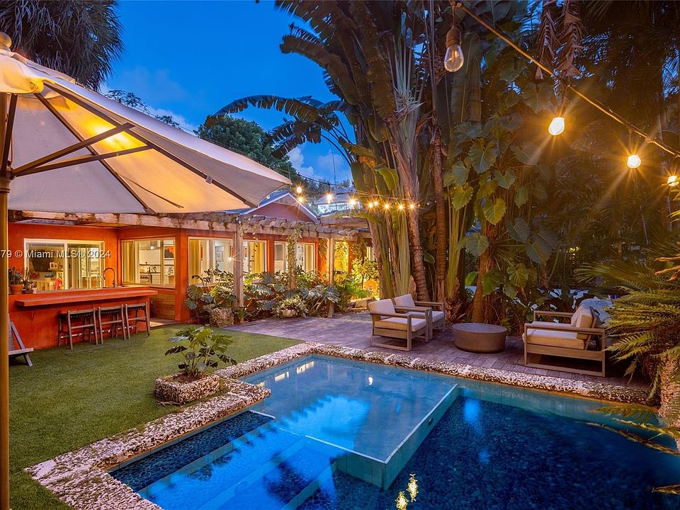 Welcome to your dream home in the heart of Coconut Grove walking distance of Cocowalk. Surrounded by a coral rock wall & automatic gate, this charming bungalow offers a private oasis with lush landscaping featuring 4 BDS & 3.5 BAS across 2300+ interior sqft blending contemporary style with cozy charm. The main house is a 3/3, with a large dining room and bonus kids’ room, and the attached 1/1 guest house is perfect for a home office or guest suite. Enjoy hardwood floors, a modern farmhouse kitchen with Wolf and SubZero appliances, an open-plan layout, and a plunge pool with summer kitchen for entertaining. Situated on a 9,350 sqft lot 16’ above sea level, there's plenty of outdoor space, room to play with friends/family in the backyard and ample parking for gatherings. Not in a flood zone.