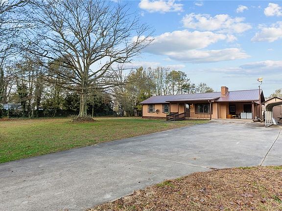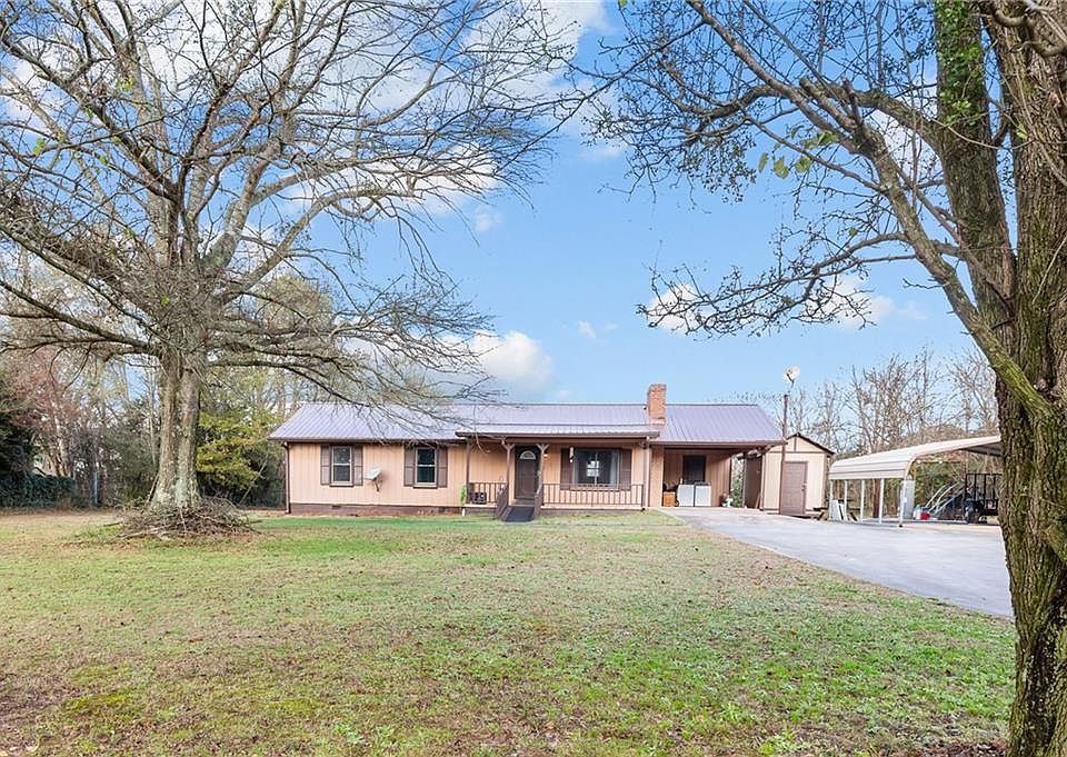 Rarely available ranch style 3 bedroom home on one full acre with NO HOA restrictions. Ideally located minutes from 400, close to Forsyth schools, and across from a popular county park, this unique property additionally offers covered parking for 3 vehicles with a storage building conveniently tucked between carports. The spacious level rear yard features a generous 2-story storage building plus another smaller storage building with attached carport. The recently refurbished interior of the home includes an all new kitchen with new modern cabinets and quartz counters, a farm-house style sink, new appliances including a refrigerator with french doors, and walk-in pantry. The kitchen additionally offers a large breakfast bar, generous dining area, and is open to the large living area with fireplace. A separate laundry room is conveniently located off the kitchen. The master bedroom features a large walk-in closet, and remodeled master bath with oversized subway tile shower and new vanity with quartz counters. The second bathroom has also been remodeled and features a tiled bath/shower and new vanity with quartz counter. Additional recent improvements include exterior and interior paint, laminate flooring throughout entire home, two year old gutters, windows, metal roof, and hot water heater.