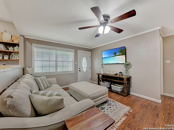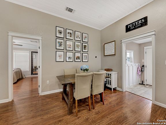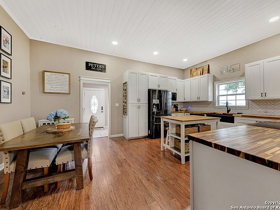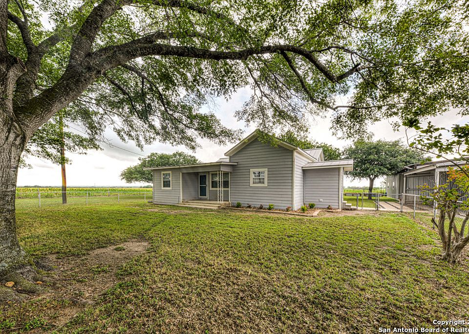 Nestled in quiet St. Hedwig, find this one of a kind property that suits every homesteader's dreams! The property features a fully renovated 1940s farmhouse. The home is 3 bedrooms and 2 full bathrooms and boasts a modern farmhouse kitchen featuring high ceilings and an open concept floor plan. Additionally, there is a sturdy two car carport and newly constructed 1260 square foot shop with two bay doors. The large covered patio is the perfect space for entertaining or for kids to play. Outside, there is a fenced in dog run, chicken coop, and raised garden beds. The yard is studded with mature trees, including a large peach tree that is highly productive. There are large neighbors surrounding the property, making it a quiet and peaceful turnkey Homestead. This property is ideal for any family looking to get out of the city while still having under a 25 minute commute to downtown San Antonio. Come see what your family's future could look like!