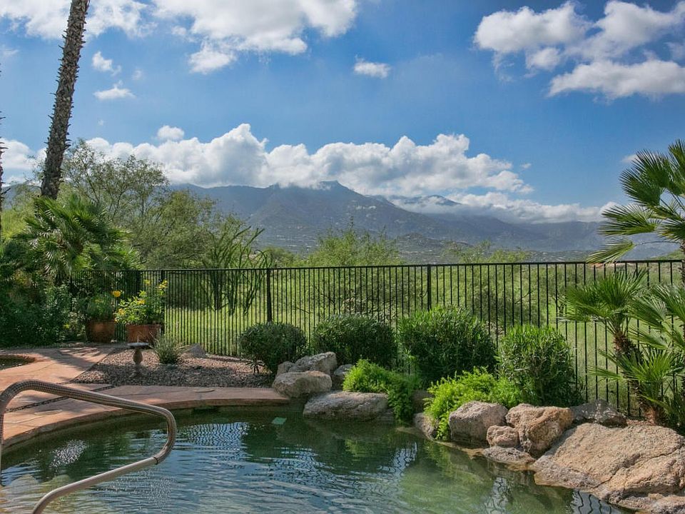 Come see this beautiful Estancia w/casita with a one-of-a-kind view in SaddleBrooke, Tucson's Premier Active Adult Retirement Community. This home has a south-facing patio and your view overlooks the 9th green & fairway on the Catalina Golf Course to the mountains--FABULOUS! Many nice features, upgrades & updates including new 20 inch tile in entry, living room, family room, kitchen and laundry room installed in 2016, granite countertops with glass/clay mosaic backsplash, new stainless steel appliances, quartz kitchen sink, beehive fireplace, 2 X 6 construction with R-19 insulation and R-30 in the ceiling (including the garage), attached golf-cart garage added in 2017, extended patio,pool/spa, updated bathrooms in master and casita in 2017, and the list goes on. Wonderful home for entertaining!