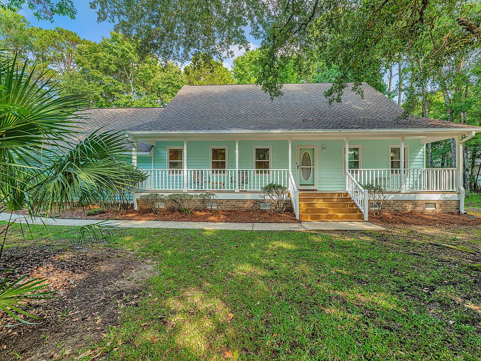 Hidden gem of country living right in Mount Pleasant! Tucked into a peaceful setting of mature trees on a large lot, this charming coastal cottage has been lovingly maintained and is ready to welcome you home! A classic southern sitting porch extends the length of the home and leads to a large foyer where you'll step inside to details such as crown moulding and hardwood floors. Just beyond the foyer is a cozy living room boasting a vaulted two story ceiling and a gorgeous feature wall with knotty pine paneling and a brick surround fireplace. A large opening flows into the eat-in kitchen where a sunny breakfast nook, tons of countertop area, including a peninsula, plenty of cabinetry for storage and newer appliances make meal prep a breeze. Adjacent the kitchen is a formal dining roomperfect for hosting dinners for family and friends. This home offers a much desired first floor owners suite featuring a beautifully finished wood ceiling, private access to the backyard, walk-in closet and en-suite bath. The bathroom boasts an extra long double vanity, new tile flooring, a tub shower combination with custom tile work. Additional first floor conveniences include a perfectly located guest powder room and a large laundry room with storage shelving and utility sink. Upstairs you'll find an open catwalk style hallway that overlooks the living area below, two nicely sized secondary bedrooms and a full bathroom as well as multiple storage closets. A large bonus room over the garage has a private staircase entrance and tons of storage access! This space is ideal as a teen retreat, playroom, secondary family room, home gym or office! Outside offers plenty to enjoy with two open air decks and a large, shaded yard. It's easy to imagine morning coffee on the deck or grilling dinner while the kids and pets play in the private yard! All of this and located in Commonwealth, situated on Alston Creek with access to the Wando River. A community boat ramp, dock, tennis courts, picnic area and play park are all private amenities for Commonwealth residents and their guests and conveniently located just minutes from Oakland Market, schools, area beaches, Costco, Roper Hospital and the world class dining and shopping of historic downtown Charleston.