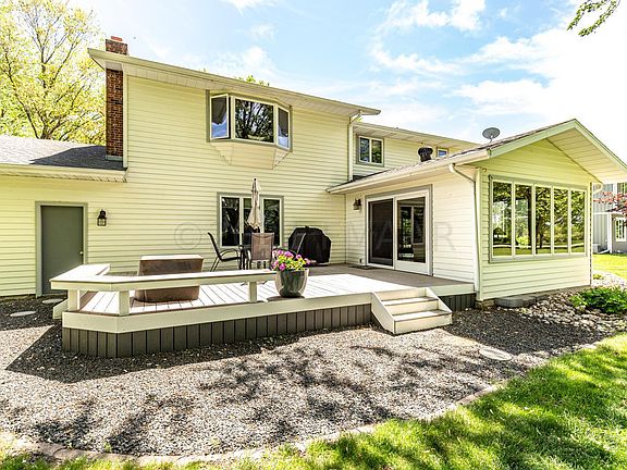 BACKS TO EDGEWOOD GOLF COURSE! Fantastic 2-Story in distinguished North Fargo neighborhood on large lot! This home has it all. Featuring an updated kitchen, as well as a sunroom, family room with gas fireplace and built-ins, bright living room with bay window and dining space right off the kitchen. Upstairs boasts 2 master bedrooms, 3 additional bedrooms and 3 bathrooms. Basement is perfect for relaxing or entertaining and there is tons of storage to keep the house clutter-free! Home is VERY well-maintained and the updates are endless! Exterior has a 3-stall garage with bonus room off the back, sprinkler system, storage shed and gorgeous views of the golf course sunsets. Full list of updates is in documents.