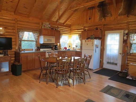 Whether you are looking for a Northwood's get away; a place to restore your soul with clean air and away from the hustle and bustle of every day life - or a hunting camp; where you and your hunting party can hunt the creatures of the forest and come back to camp to show off your trophy's, this nearly new (2003) log cabin/cottage provides the best of both worlds. There is an open concept kitchen, living room and dining area with a free standing wood burning stove to help take the chill off on a cold winter night. The loft has additional sleeping area for your hunting buddies or guests. There is a approximately 17 acres of land (per tax role) to roam and hunt. This luxurious year round cabin (forced air/LP/ heat, drilled well, 3 bedroom bio-kinetic septic system) could be yours before the next hunting season begins. Furnishings are negotiable.