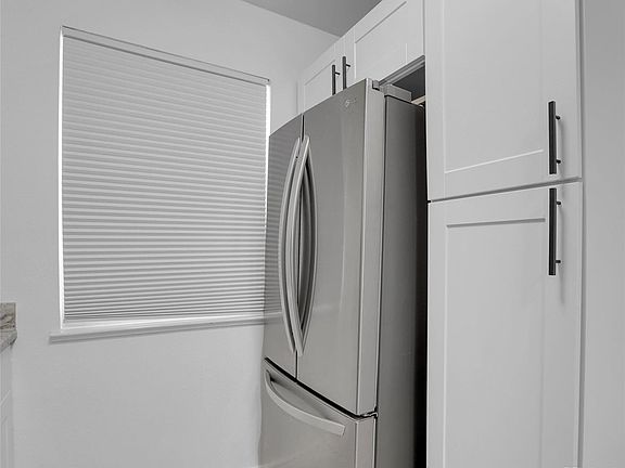 This modern abode has been thoughtfully updated with a chic aesthetic featuring grey tones and crisp white accents throughout. The kitchen boasts top-of-the-line LG stainless steel appliances, complemented by elegant white shaker cabinets and luxurious white marble countertops.