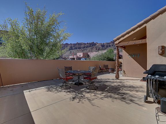 RIM VILLAGE V2 Imagine relaxing on the oversized, fenced, private patio with your adventure cohorts, watching the sun dance along the Moab Rim as you share the stories of your day on the trails! This beautiful single-level townhome has been meticulously maintained and decorated as a second home, but is zoned for vacation rental use and ready to enjoy. Gorgeous Master Suite with patio access, Great Room with gas fireplace, spacious kitchen and dining, attached 2 car garage and lovely community amenities. A perfect home base, and let nightly rentals help pay for the unit when you are not enjoying it!