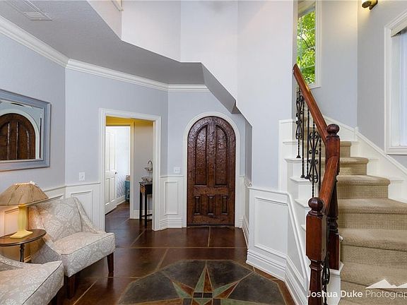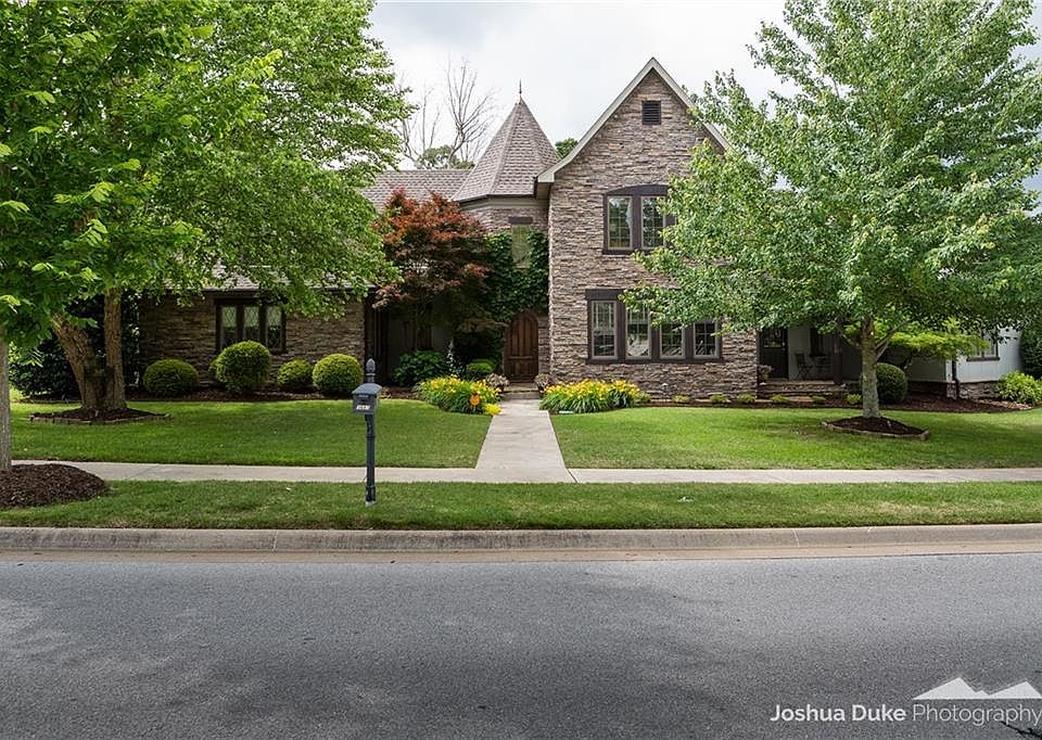 Fantastic European style chateau with brick/stone and real concrete exterior. Many updates include new kitchen & laundry room with fabulous colors. New hardwood in Master. New color and paint. New doors leading to deck. Roof in 2012 with refinished exterior. New AC in 2014, LED recessed lights. This home is immaculate and move in ready. Scored concrete floors are beautiful with soaring great room, cast concrete fireplace and gorgeous beams. Double staircase for upstairs access to 3 bedrooms, 2 baths and a private bonus room.