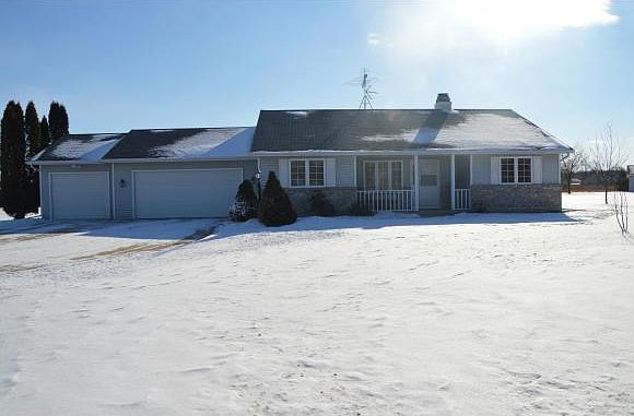 2+ acres(P/assr) ranch with a 3 1/2 stall attached garage and a 2 1/2 stall detached garage. Enjoy country living with easy access to the the HWY in this open concept split BR ranch home. Master suite with walk in closet and full bathroom, large pantry, brick fireplace, and spacious kitchen for entertaining. Home has many updates and is move in ready with new flooring. Pride in ownership shows!