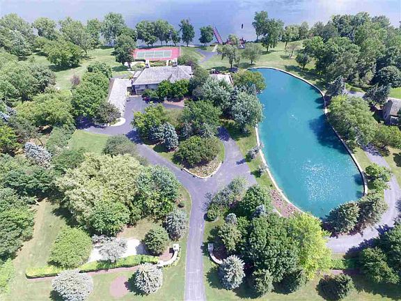 Timeless and Captivating. This home CELEBRATES LIFE! From the sophisticated to the sporty, from playful to tranquil. The vaulted Great Room features a 'Wall of Windows' that looks upon the terraced path to the Tennis Court & 1200 ft. of river frontage. The winding staircase entices you to visit the enchanting Loft and Master Suite. Guests will enjoy the Bar/Lounge that leads them to the inviting Pool Suite. Energy use is minimized be employing Smart Technology, Geothermal temp. control and LED lighting. Property is on 2 parcels. The southern 3.5 acre piece could accommodate a 2nd river home.