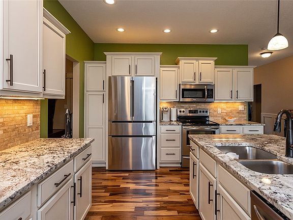 4 bedroom, well maintained Ranch home in Verona Hills South!! This great floor plan features over 2700 finished SF of living space. Main level showcases a large kitchen with center island, full tile backsplash, under cabinet lighting and dining area. Living room has built-ins, w/ floor to ceiling stone surrounding a gas fireplace. Primary suite features tray ceiling, large dual vanity, full tile shower and walk-in closet.2 additional bedrooms and full bath on main level.Mudroom with lockers and laundry room with plenty of storage space.Finished lower level with 2nd living space includes amazing showcase wall with built-ins and stone fireplace surround, wet bar, full bathroom with tile shower, 4th bedroom and large storage area.3 car garage, Irrigation, Covered Deck, all appliances stay including the less than a year old Bosch refrigerator. Great location and large flat backyard! Radiant Elementary, Northwest Waukee Feeder! All information obtained from Seller and public records.