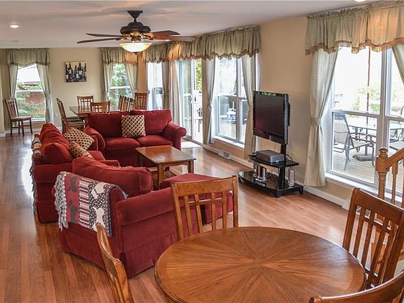This is a beauty! Sitting pretty with 100 feet of prime Seneca Lake waterfront. With a total of 5 beds, 4 full baths and 1 half bath, this home is set up for entire families to come and enjoy the lake lifestyle. Ceiling to floor windows give this home full access to panoramic views of the lake. Plenty of natural light throughout the home and central air to keep the home cool on hot summer nights. Large kitchen offers expansive counter space with raised breakfast bar. Two master bedroom suites with walk in closets and en-suite baths. Extra bonus room on the first floor and possibility of finishing the basement could add more space for larger families. This is an investor's dream! Large deck overlooks large lot. Supurb rental history! See it today!