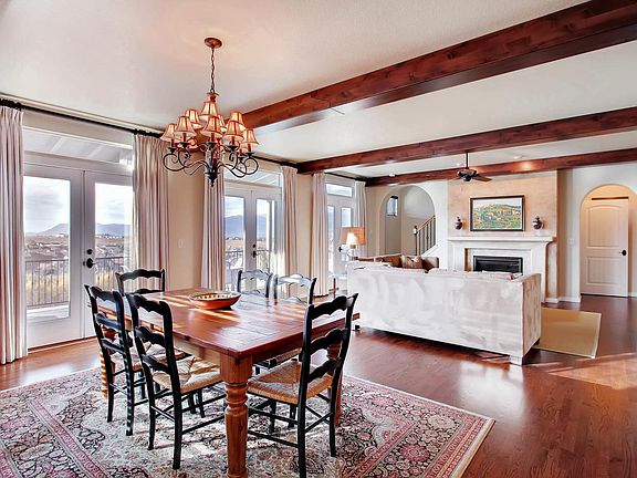 Absolutely stunning home perfect for entertaining and main level living. The bright open great room looks on to awe-inspiring, unobstructed views of the entire front range and Pikes Peak. You'll adore the gourmet kitchen with top of the line appliances with plenty of shiny granite slab counters and huge breakfast bar that looks on to the great room, over elegant hardwood floors in all the traffic areas and gorgeous views. Walking out to the beautiful covered deck is irresistible where you can entertain year round in front of the gas fire pit and have privacy as well as amazing views. The main level master suite also walks out to the deck and is focused on Pikes Peak views. There are many elegant finishes in this beautiful home including a built-in master armoire, custom closets, separate his/hers vanities and a massive soaking tub. The upper level is perfect for guests with a loft and two large bedrooms. Watch your favorite shows in the recreation room of the walk out basement with plenty of storage. All the french doors are upgraded with magnetic phantom blinds to allow the wonder Colorado fresh air to flow through the main level. This home is an absolute beauty.