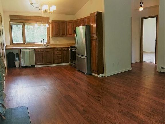 Great open concept home with 2 bdrms, 1 ba, 1 car garage, & storage shed/greenhouse. Many recent upgrades including the driveway being rebuilt, new stainless steel kitchen appliances, flooring throughout, countertops, light fixtures, and some windows. Updated with entirely new Septic System in 2015. Private location with tons of potential & just 5 minutes from Kenai River boat launch!