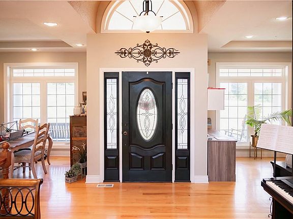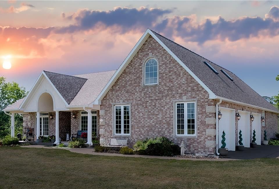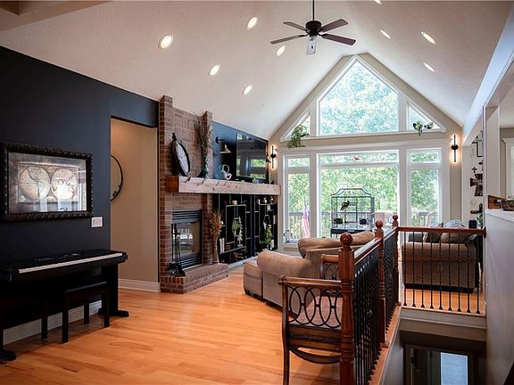 Located in the award winning Lawson School District, this 8+ acre property is sure to check ALL the boxes. All brick ranch home built with 2x6 construction with concrete footers. No need to worry about internet connection here! Starlink setup provides high speed internet without interruption. Home comes with MANY upgrades including a 30x60 concrete floor shop with its own 200 amp electrical panel and is plumbed for its own bath or water source. Recently renovated Living room/kitchen includes; oversized windows, custom built ins with a modern fireplace mantel, a unique custom floor pattern, Miller Cabinets, a large eat in area, and a giant island with pop up electrical for your mixer or charging station. Oversized 3 car garage includes an outdoor bathroom, large windows and a 240v plug for your EV vehicle charger. Loft space above the garage is great for an office, studio or nonconforming 5th bedroom. Each upstairs bedroom has its own private bath, large windows, and walk in closets. Basement includes; kitchenette, 4th bedroom, 2 outside access doors, 9 foot ceilings, many windows, a concrete safe room, and an oversized stone fireplace with original wood from the barn that sat on this site before construction. Land comes with an orchard original to the first built home over 100 years ago and a creek in the back! This site can be used to build an additional home right by the road to suit! Land is surrounded by trees and wildlife sure to please even your toughest buyer with its serene views and calm energy. Chicken coupe included with chickens if desired! Oh did I forget the treehouse? Sooo much to share! You have to see it to appreciate all this home has to offer! Hurry!