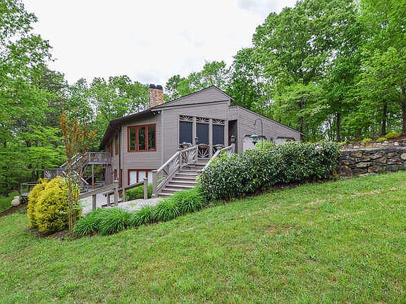 One owner custom built California contemporary ranch on 13+ acres-Wooded setting w/open land for horses year round stream. Open floor plan. Multiple updates. 3 Master suites-2 on entry & 1 upper. BR 4 on lower level (used as exercise room) w/adjacent sauna and bath. Lots of glass-2 corner sun rooms. Balconies & decking. Gazebo. Screened porch. Storage bldg (12x20). Additional acreage available. Designed for ageless family growth & utilization. Energy construction features. See detailed supplement.