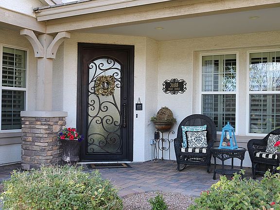 This exquisite home stands out from the rest with it being completely updated and remodeled with the latest and finest finishes. This corner lot home is loaded with the very best of upgrades including: Hardwood floors, plantation shutters (42 to be exact), beautiful, thick crown molding and trim work throughout home including shiplap, board and batten and bead board. It bodes a gorgeous, custom wrought iron front door for a grand entrance. The gourmet kitchen includes brand new granite counter tops with 42 inch staggered white, glazed cabinets with crown molding, a farmhouse sink, glass subway tile, stainless steel appliances, large kitchen island with gray painted trim work detailing, double oven, walk-in pantry as well as a spacious breakfast nook with trimmed out windows and crown molding. Designer interior paint throughout, beautiful new up-to-date light fixtures and numerous canned lights added throughout home. Luxurious master en suite downstairs that includes a coffered ceiling, large open windows, board and batten walls, and the master bathroom is complete with marble counters, square under mount sinks, polished chrome faucets, glass subway tile backsplash, herringbone patterned wood tile floor, chandelier, rain shower and jets in the snail shower. In home theatre system prewiring and flush mount surround sound speakers are located in the game room and family room. Built in entertainment unit in family room provides bookshelves and extra storage space. Elegant curved stairway with wrought iron railing and white wood rail. Built in desk area in living room niche for a home office space. Paver welcome walkway in entrance with stack stoned pillars and paver patio. Back yard is perfect for family fun and entertaining with its covered paver patio, pool with rock slide, hot tub, baja step, diving rock and lounging area. The backyard also boasts a fire pit, built in barbecue, speakers, and five mature fruit trees. Enjoy near by amenities: walking trails, parks and playgrounds, green belts, playgrounds, basketball & sand volleyball courts, and catch & release fishing lakes in this great community. No solicitations of any kind please.