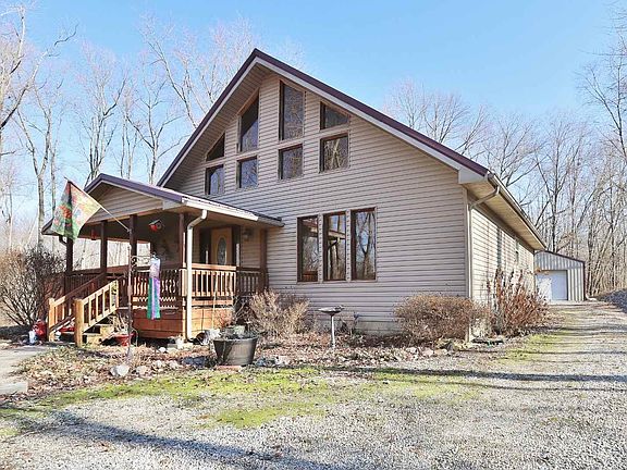 Welcome to this beautiful 1 1/2 story home. This home is located just a few miles from everything. Set on 5 amazing wooded acres, this spectacular home has a cozy log cabin feel to it, with a balcony just outside of the master bedroom so you can overlook the serenity of the woods. With new stainless steel appliances, you can enjoy home cooked meals in the spacious eat in kitchen. With a great 24x24 garage, and a brand new HVAC system, this is the perfect home to start the new year in! Come take a tour of this fabulous home today!