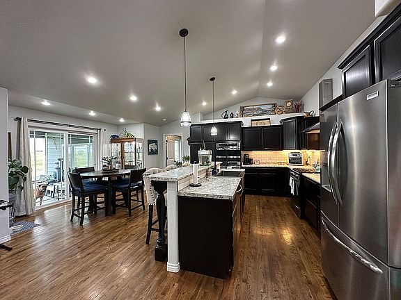 Gorgeous views of Wyoming Sunrises and Sunsets at this beautiful 5 Bedroom, 3 bathroom home. The upstairs has an open concept, master suite with 5 piece master bath. The down stairs has a beautiful lounge and bar with granite counter tops, rustic birch cabinets, built in entertainment center and game room. With the walkout basement and sprawling 35 acres make this house your home!
