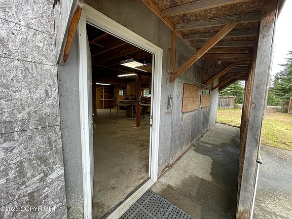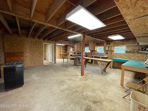 Cabin (768 sf) was gutted. Used to store bldg supplies, tools, & other personal property. Loft area for storing/painting bldg materials. Roof above loft raised 3ft, dormer added. Green house attached. Carport/boat storage(512 sf) There is a small older log structure worked well for dry storage. Plenty of parking, circle drive. Small insulated room w/thermostat easy to heat for paint storage.