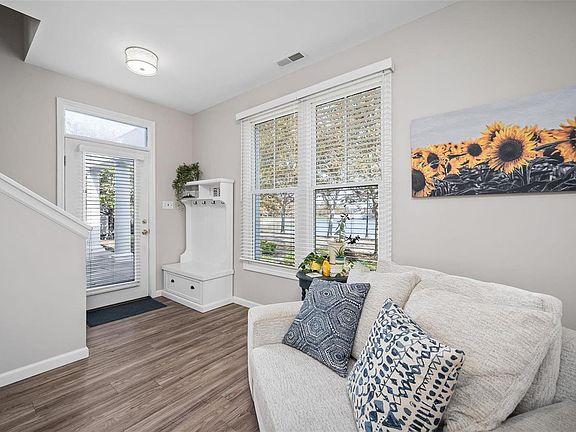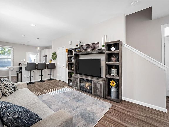 NEW TOWN TOWNHOME W/LAKE VIEW! Adorable Arpent Street townhome with a relaxing lake view from your shared front porch & front windows. Loads of upgrades and updates...9’ ceilings, newer luxury vinyl plank flooring on the main level, newer carpet on the stairs & 2nd floor, neutral paint throughout & white 6-panel doors. Fabulous kitchen w/Whirlpool appliances (smooth-top stove, overhead microwave, dishwasher & refrigerator), soft close cabinets & drawers topped with luxurious Cambria quartz countertops & new breakfast bar (2022). Baths are also renovated~ lighting & mirrors and the 2 full baths have new cabinets & granite countertops. 10 x 10 patio off the kitchen perfect for BBQ! 2 off street assigned parking spaces accessible from the patio directly into the kitchen making unloading groceries convenient! 2nd floor laundry-washer/dryer stay! Alarm system. Newer Tankless hot water heater provides on demand hot water! BRAND NEW HVAC & AC! Don't miss your opportunity own this beauty!