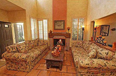 WOW! Big price reduction on this fantastic home at Chateau Village!Enter the front door to this absolutely charming hacienda style home! Hand tinted saltillo tiles, faux finished walls throughout, handpainted tile in kitchen and stairway, built in Tapas table in kitchen, custom cabinets,farm sink,hand painted bannister and fireplace mantle, private patio... great for entertaining! This is a treasure! Very charming and unique! The quality, design and style are apparent throughout! Do not miss!