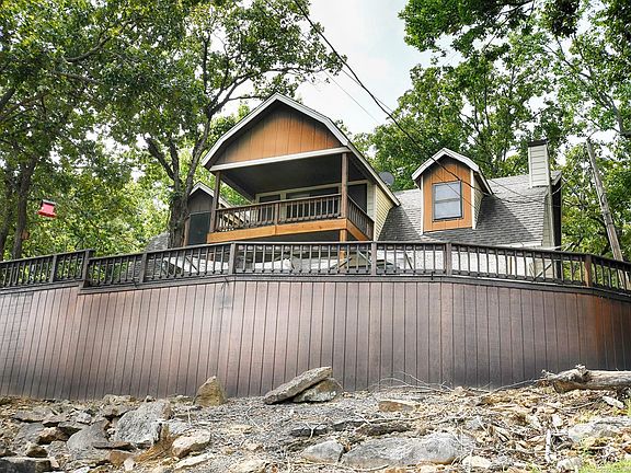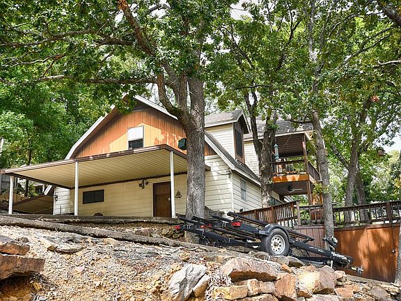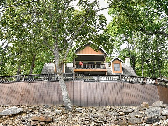 Rare walk to water property! This cabin has 3 bedrooms and 2 full baths and is approximately 2300 sq feet. It was once a 4 bedroom and could be easily converted back. The living room and kitchen hosts a open concept with a massive view of Cato Cove and Snake Creek Marina! The property also features auto blinds, a concrete drive, storage shed, and a massive deck! For an additional $70,000 there are 2 boat slips available within walking distance. Seller is a licensed agent in the state of Oklahoma.