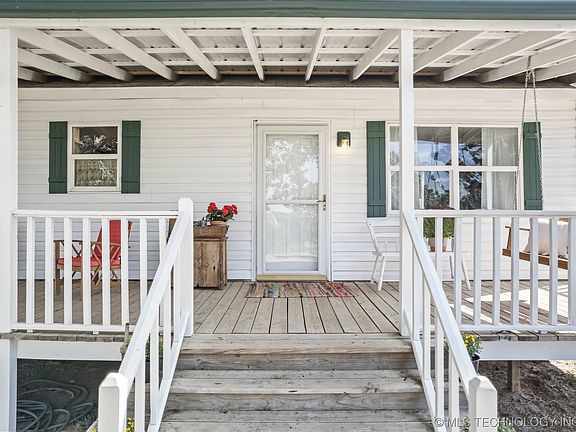 Farm House Cottage! open and spacious 2 bedroom, 1 bath home, the french doors and windows will certainly make this home light. New 19 seer mini split for heating and cooling, kitchen island, pantry, 640 sq. ft. of wrap around porch with a view of the 40 acres. Stove, Washer and Dryer will remain. Floored attic with extra insulation.