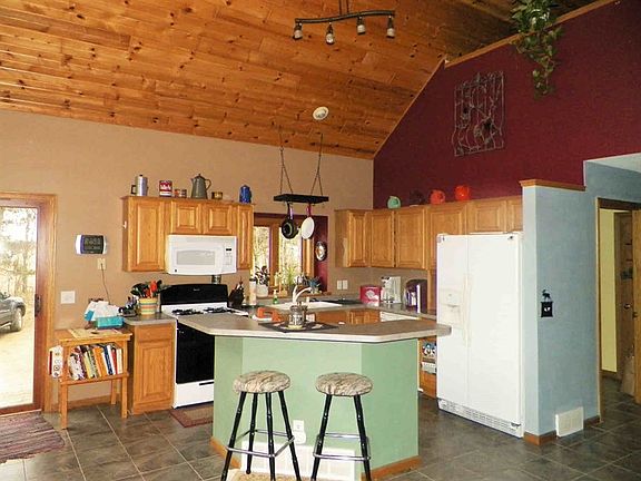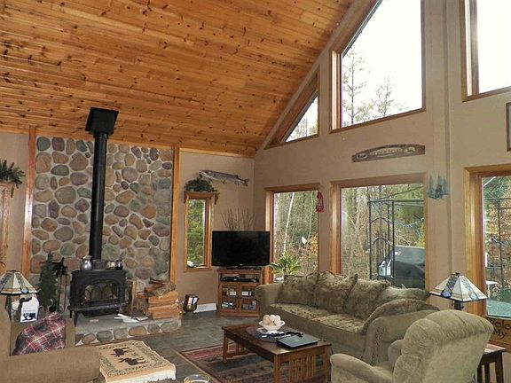 RH1186 Built in 2005, this 3 bedroom, 2 bath home has an open floor plan, vaulted ceilings and large picture windows, wrap around deck along with huge pine and mature woods throughout. South edge of land abuts a small pond that is great fishing. Trails through property as well as a couple campsites and picnic areas. The perfect country home for someone looking for a quiet spot to get away from it all.