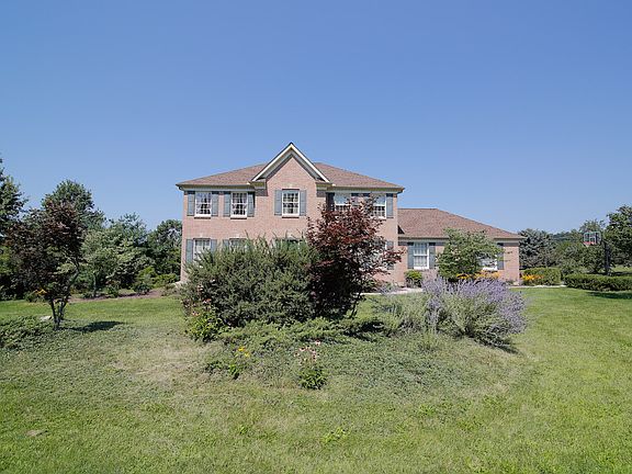 Escape to Peace and Quiet! Well-maintained 4 bedroom 2.5 bath Colonial with large foyer, double closets, ceramic tile flooring. Formal dining and living rooms. Super-efficient kitchen with lots of counter and storage space connects to the breakfast area and family room. Open concept floor plan so everyone can enjoy their space and yet be together. 1st floor laundry off the kitchen makes it easy to multi-task! 2nd floor offers 4 spacious BRs with large closets. Master suite includes sitting area and a Jacuzzi tub and shower in MBA. Finished basement with storage galore, cast-iron propane fireplace, custom-built bar for entertaining or move the party outside to the great deck with gas grill! Oversized 2-car side entrance garage and a huge custom-built storage shed. Yards of yard with landscaping that is easy to maintain, mature trees in a neighborhood with 1+ acre lots. Enjoy the privacy and tranquil country feel of this lovely neighborhood. Convenient to shopping, highways, downtown.
