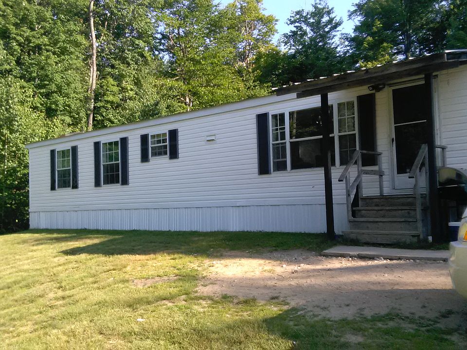 14 by 80, 3 bedroom, 2 bath mobile home on 2.43 acres of land. 2 driveways one on town road and one on private road. Has a 20 by 30 pole barn with wood stove, work bench, lights inside and outside and basketball hope on one side. Shed for extra storage. Homemade dumpster. Sets off town road. Has fire pit in back.