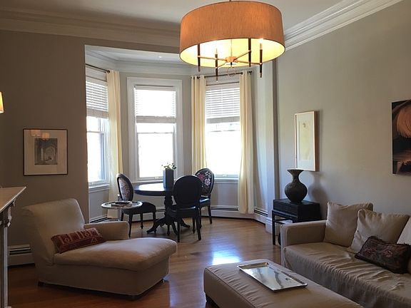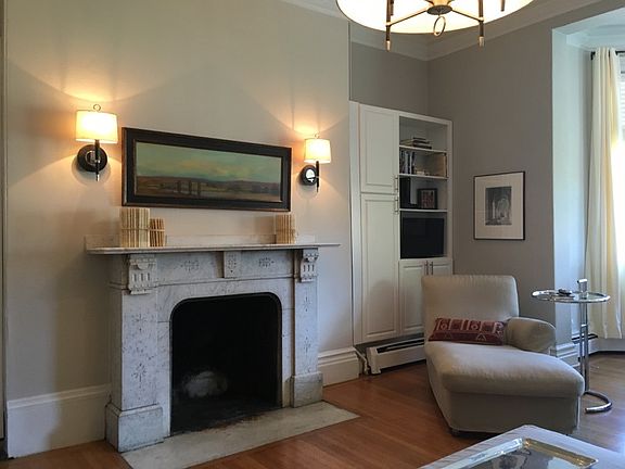 Immaculate brownstone with professionally landscaped front garden. Large 1 bedroom apartment is located on Beacon St. and Fairfield. Front-facing with bay windows, high ceilings, hardwood floors, intricate detail, and 2 decorative fireplaces. Renovated kitchen with granite counter-tops and stainless steel appliances. Heat and hot water included and common laundry in building. Welcome Home!