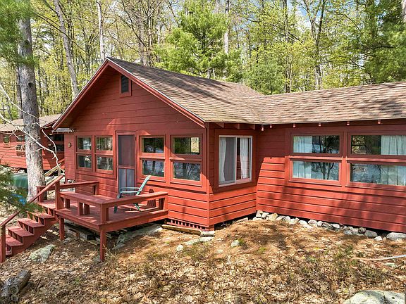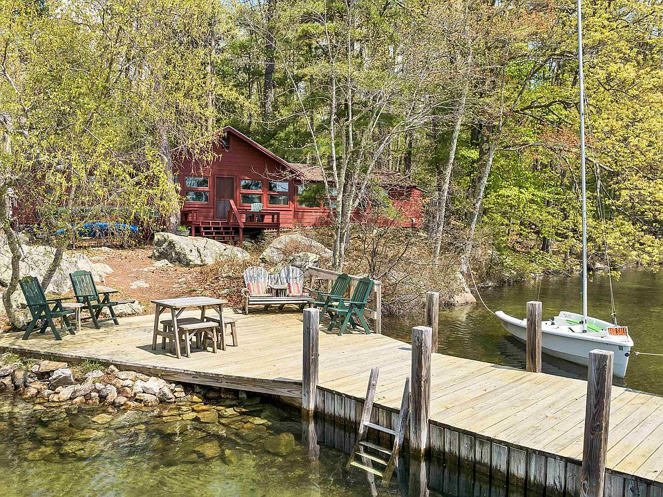 Bear Island, Meredith, NH-An opportunity like this one comes by so infrequently that when it does, let your heart lead the way and know the decision you make, you will never regret. When you pull up to the newly re-built 40-ft crib dock and lakeside deck, you will feel your mood change and will realize this location on Lake Winnipesaukee is magical. Looking due south you get plenty of natural light; the sun hits the dock before 7:00am in the summer months. If "getting away from it all" is what you are trying to achieve, this cottage offers exceptional privacy sitting on just over 2 acres of land with 400+/- feet of crystal clear, private waterfront. This small lakefront compound has a main cottage that was originally built in 1932 and has seen many additions offering 3 bedrooms, a cozy screen porch, recently rebuilt kitchen and a "great" room that will host hours of fun. The lakeside windows, the roof, the kitchen, the screen porch have all been replaced or rebuilt in recent years. There is a separate and private "sleeping" cottage that all will fight over to see who gets that space for the weekend. The bath house is brand new and is an amazing bath for island living. No island camp is complete without a workshop, this shop is one you will brag about. You will love this quiet location and all the property has to offer. This property is being sold completely furnished minus a few personal items. Delayed showings with first showings available Tuesday, May 28, 2024.