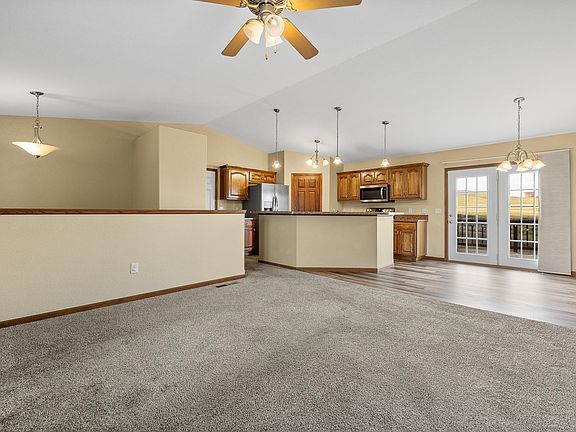 Looking for a move in ready home close to the city and EAFB? This ranch style home with a walkout basement is for you. The outside is LP Smartside siding with steel soffit and facia, to make this house low maintenance. Main floor is open concept with a great island to work and eat. The kitchen has up-to-date appliances, built-in corner pantry, and solid oak cabinet fronts that make the kitchen a great design. The dining area has a French door that walks out to a deck that has expansive views to the west, no neighbors in the back. Two upstairs bedrooms and a bath complete the main level. Head down the light-filled stairs to the basement and you will find a large family room for movie nights. The family room has access to the outside to a concrete patio, just ready for outdoor activities. The master bedroom has great dimensions and has a WIC with built in shelving. Master bath comes with 2 sinks and a walk-in shower. This would make a great home for your clients.
