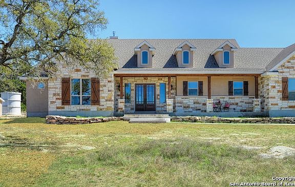 Tranquil Hill Country Masterpiece on 4 Acres in Highly-Desired Waterstone! Chef's Kitchen with oversized granite bar & Bosch Appliances including Built-In Refrigerator and Pot Filler over Gas Cook Top! Lots of Natural Light, Wood Beams. 4th bedroom now used as study. Loads of Storage. Climate Controlled Attic, 3-Car Garage plus detached 1120 sq ft RV Barn. Enjoy this great gated neighborhood with 2 parks and access to Guadalupe River.